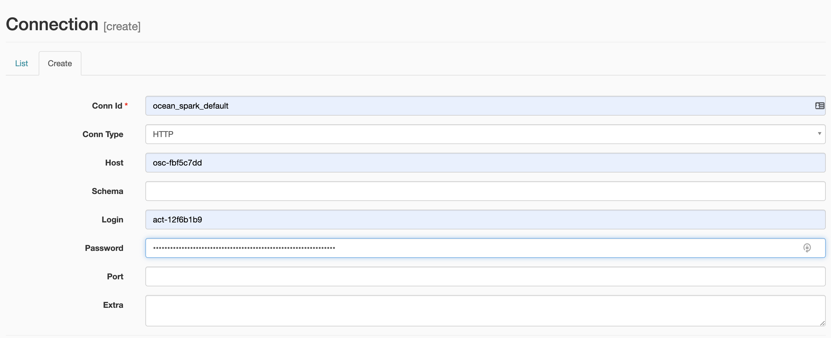 Configure a connection to Ocean Spark in Airflow: